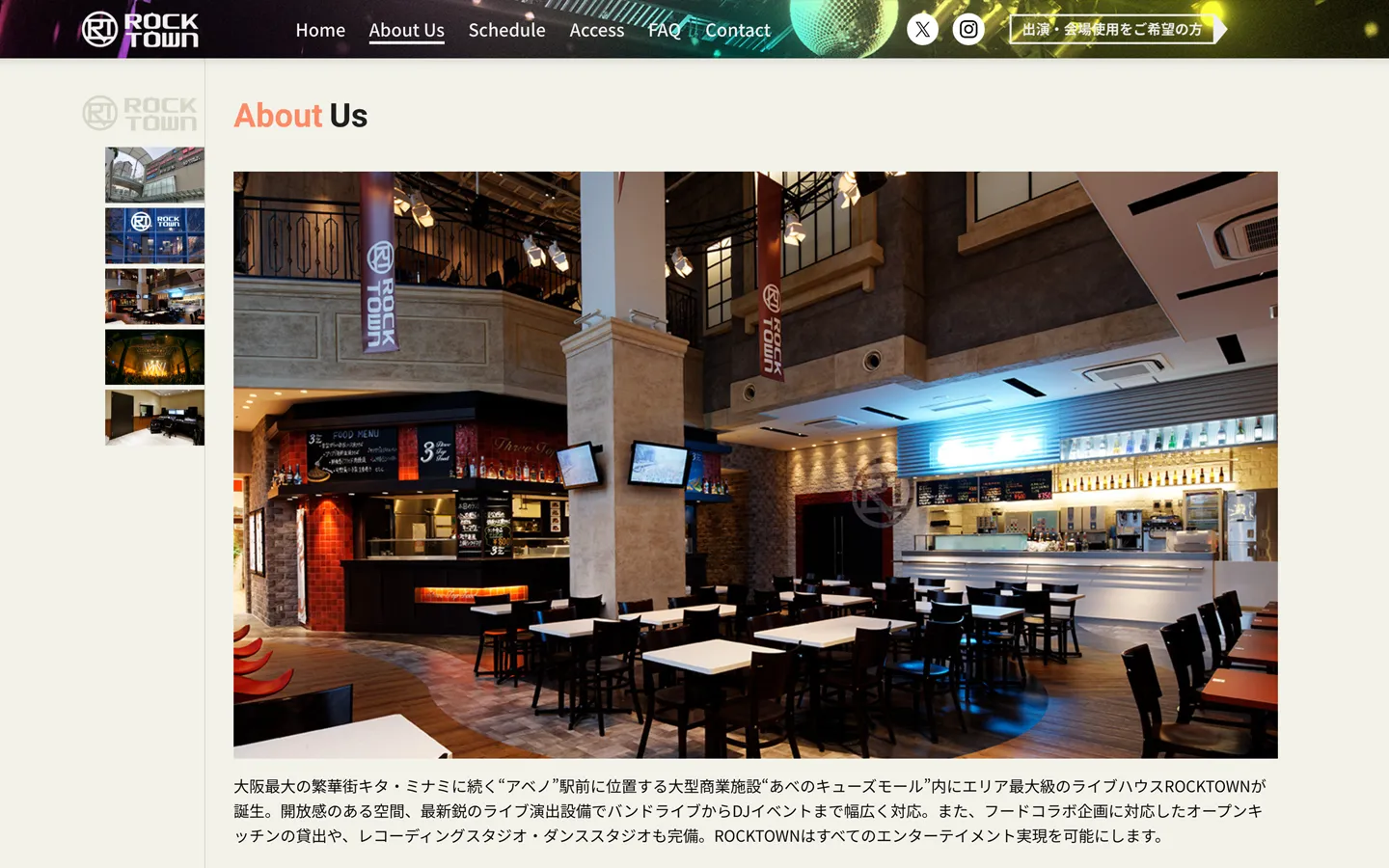 ROCKTOWN は、大阪・阿倍野という都市の動線上にありながら、単なるライブハウスの枠を超えた文化の交差点として存在しています。